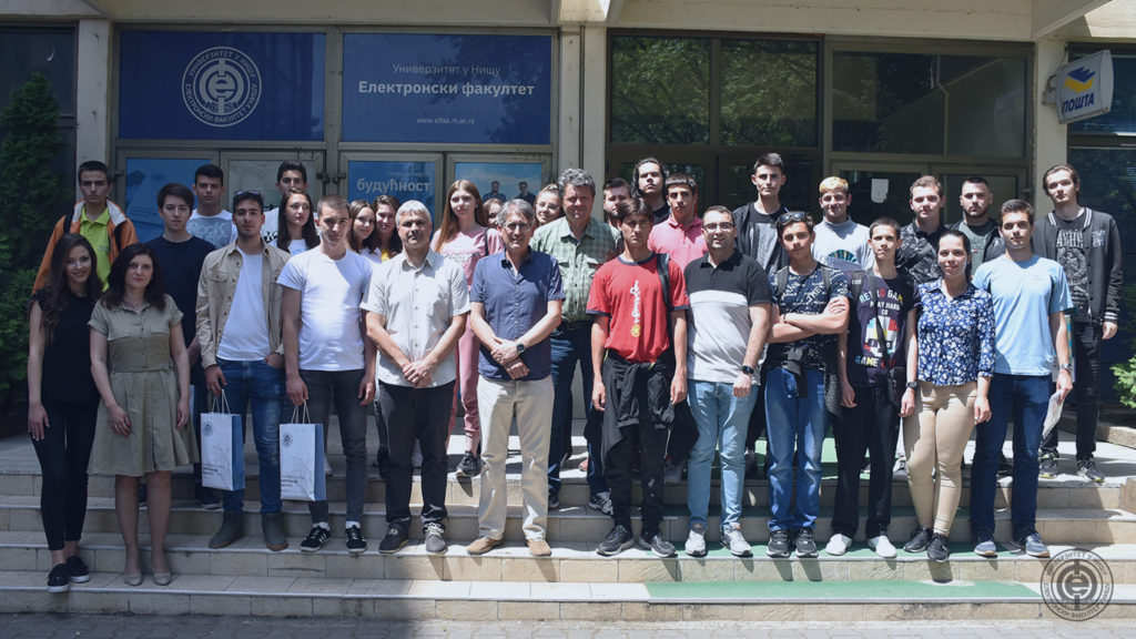 24.05.2022. On Tuesday, May 24th new workshop was organized at the Faculty of Electronic Engineering Niš. Prof. dr. Danijel Danković presented a talk where the diodes were the topic, while Prof. dr. Goran Ristić spoke on ionizing and non-ionizing radiation. Students came from high schools Mija Stanimirović Niš, Nikola Tesla Niš, Svetozar Marković Niš and the Technical High School from Vlasotice. They participated in the workshop and after that, the quiz was organized. Students who provided the best results were awarded. Part of the students had the opportunity to visit the Mechatronics Laboratory and the Science-Technology Park. In organizing this event participated Assoc. Dr. Emilija Živanović, Miloš Marjanović, Jana Vračar, Neda Stanojević and Marija Živković.