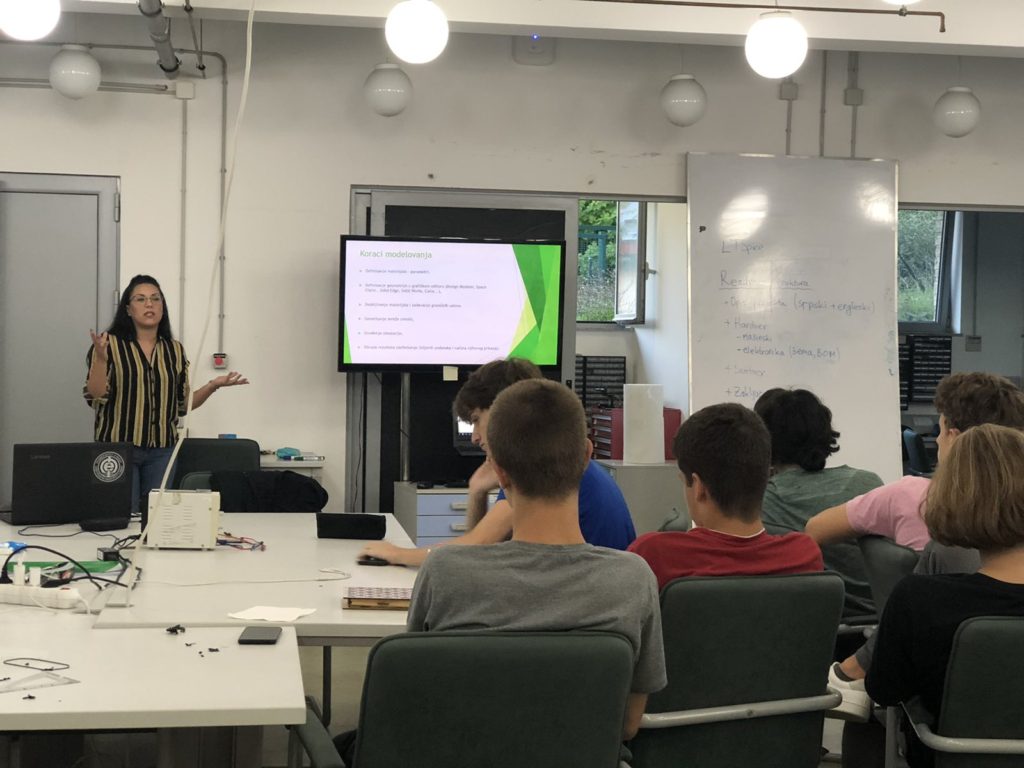 09.06.2022. On Thursday, June 9, 2022, high school students from „Mija Stanimirović“ Niš participated in a course of the fundamentals of 3D printing. The students had the opportunity to learn the basics of the printing process and become familiar with the necessary tools for 3D modeling throughout the course. Each group went through the processes of modeling their model and prepping it for printing. Students finally had the chance to check out the produced models. Nikola Mitrović and Sandra Veljković from IEEE SB Niš led the workshop.